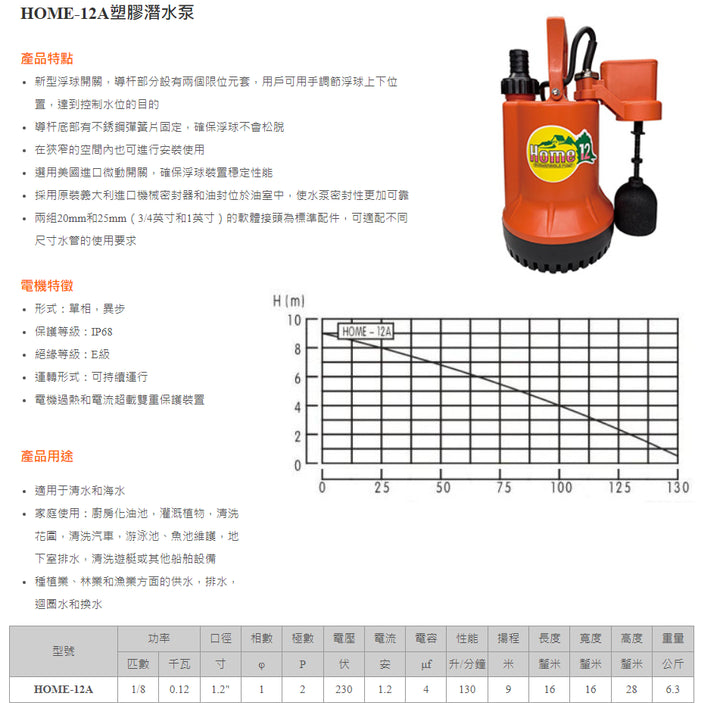 Garden潛水泵 HOME-11、12A